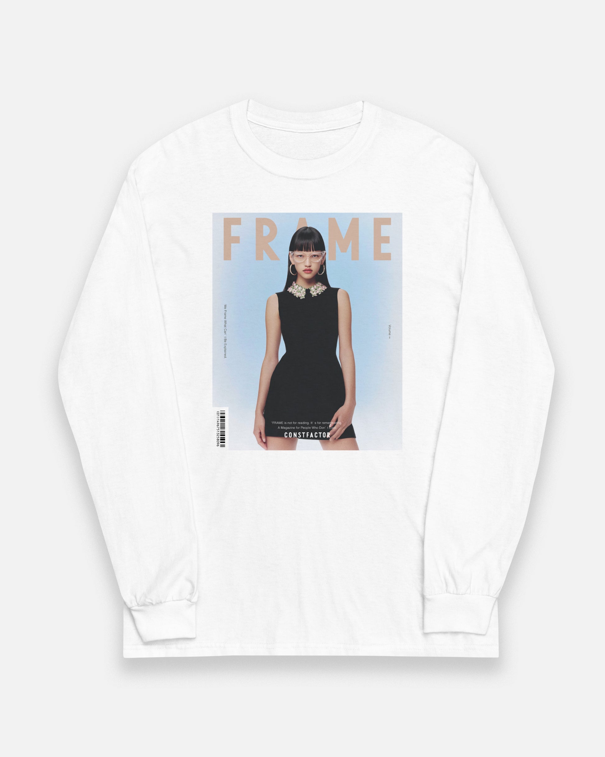 A unisex long-sleeved T-shirt featuring artwork from the cover of FRAME, a fictional art and fashion magazine published by CONSTFACTOR.